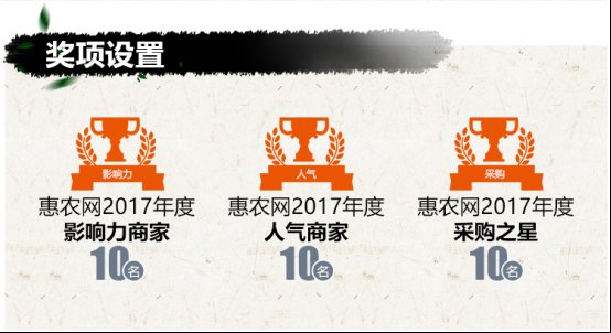 惠農網相信,隨著農歷新年消費旺季的到來,年度商家評選活動的舉辦,對品牌知名度提升和流量增長都將具有明顯的疊加效應,其勢必也會成為2018開年農業行業最受關注的活動之一。